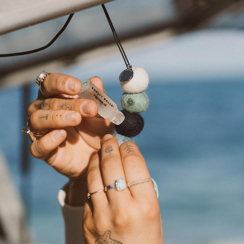 They are reusable air freshener balls that are a playful and customisable way to keep your ride smelling fresh. Each set comes with wool felt balls, a charm, and a 5ml fragrance oil for you to use as much or as little as you like - you're in control!