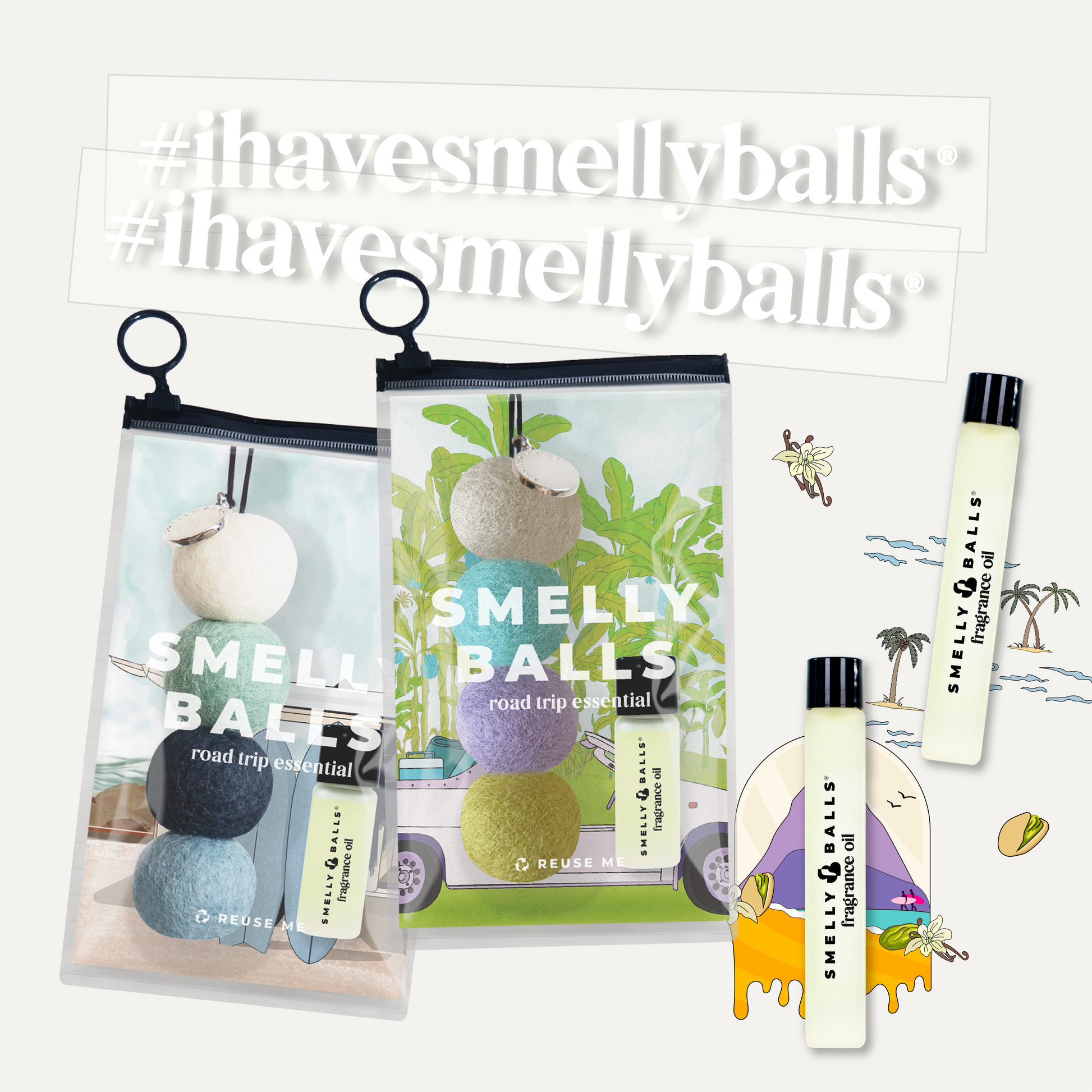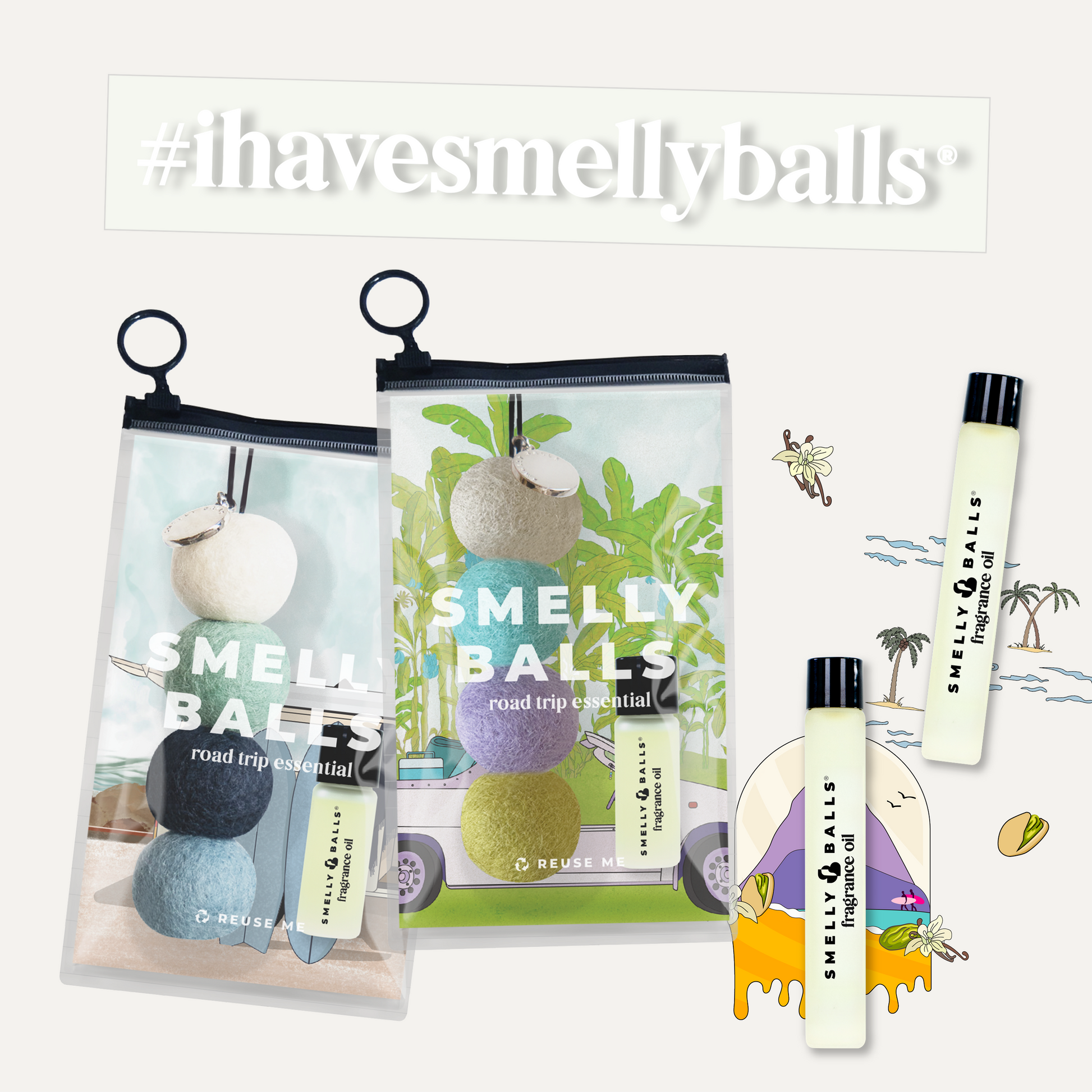 They are reusable air freshener balls that are a playful and customisable way to keep your ride smelling fresh. Each set comes with wool felt balls, a charm, and a 5ml fragrance oil for you to use as much or as little as you like - you're in control!