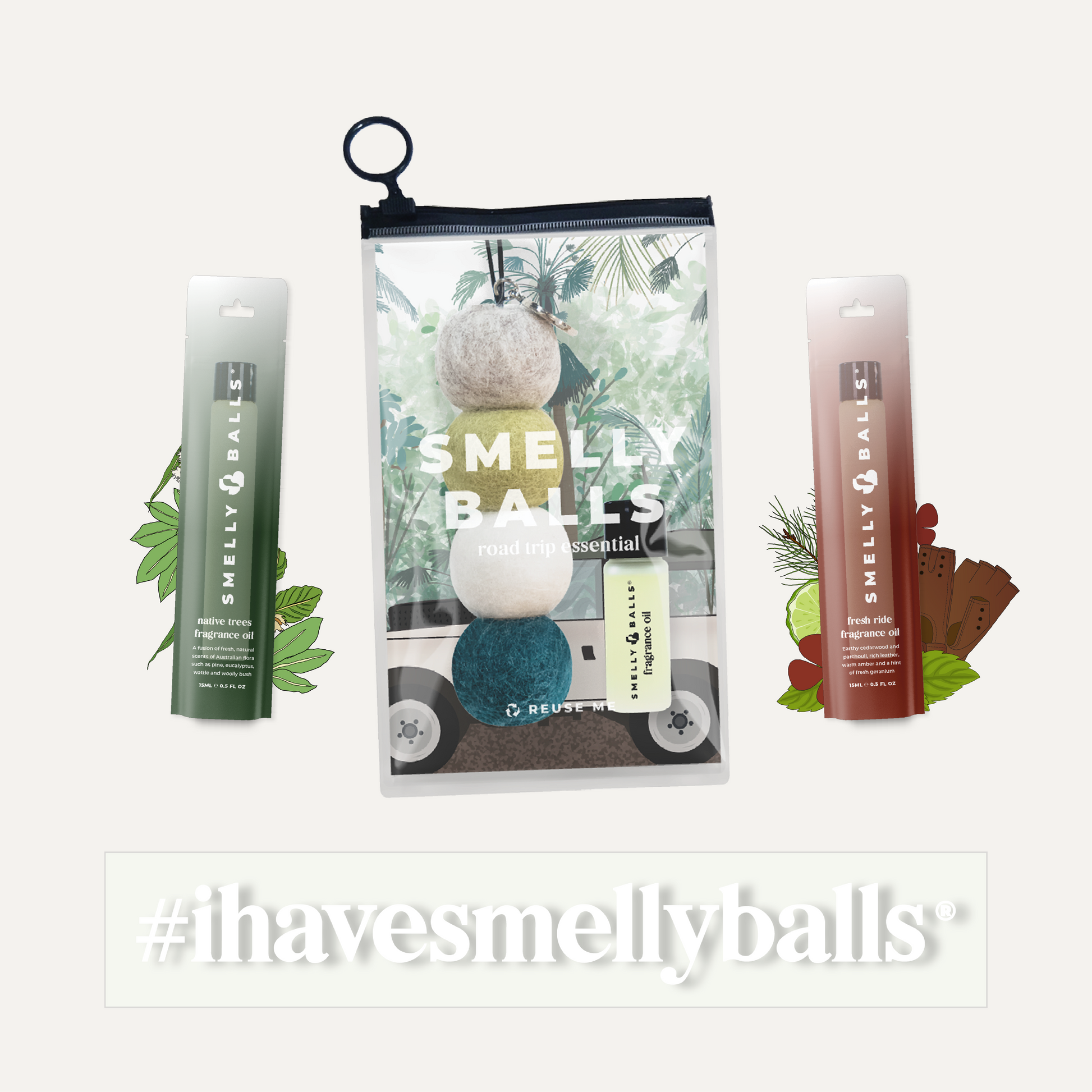 They are reusable air freshener balls that are a playful and customisable way to keep your ride smelling fresh. Each set comes with wool felt balls, a charm, and a 5ml fragrance oil for you to use as much or as little as you like - you're in control!